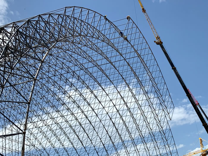 (2)网架加工前应对现场尺寸进行复测,确认无误后方可进行加工、安装;网架制作、运输、安装应遵守《空间网格结构技术规程》JGJ7-2010、《钢网架丹阳螺栓球节点》JG/T 10-2009、《钢网架丹阳螺栓球节点用高强度螺栓》 GB/T 16939-2016、《钢结构丹阳工程丹阳施工规范》 GB50755-2012、《钢结构丹阳工程施工质量验收标准》 GB50205-2020。